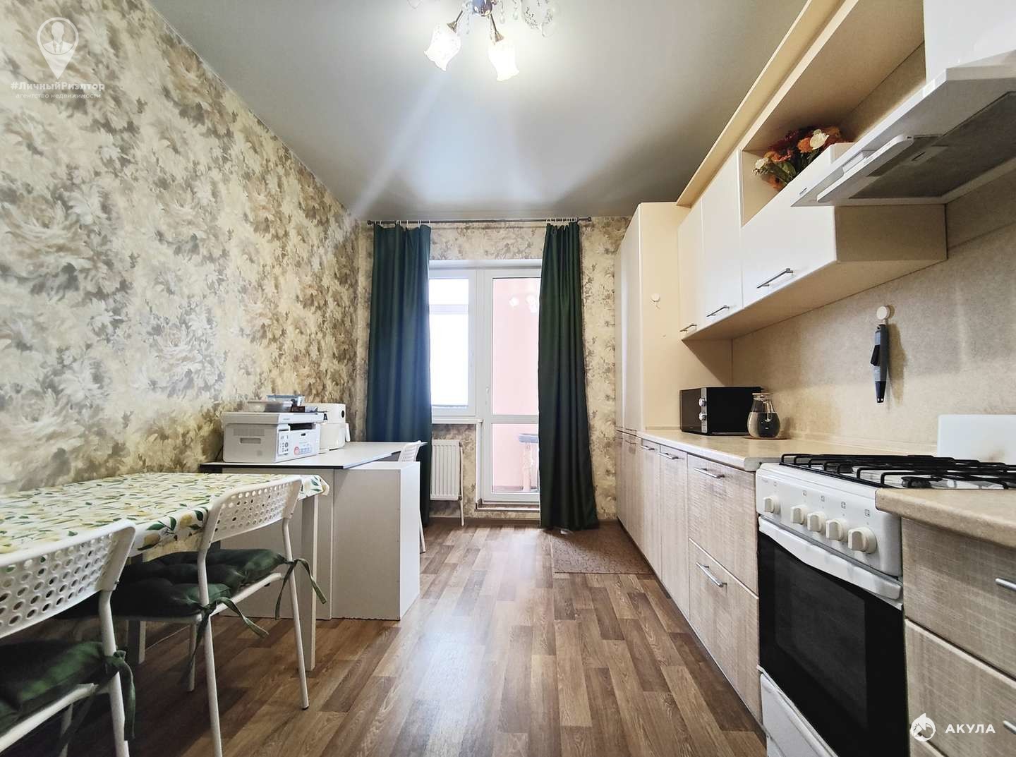 Большая кухня с выходом на лоджию с красивой панорамой .