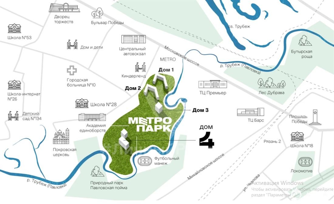 Во дворе наземная парковка, безопасные детские площадки, огороженная территория. Для прогулок- облагороженная набережная с зонами отдыха. Вся инфраструктура в пешей доступности: Академия единоборств, остановки общественного транспорта, ТРЦ "Премьер", Автовокзал, мед. центры, Городская больница №10.