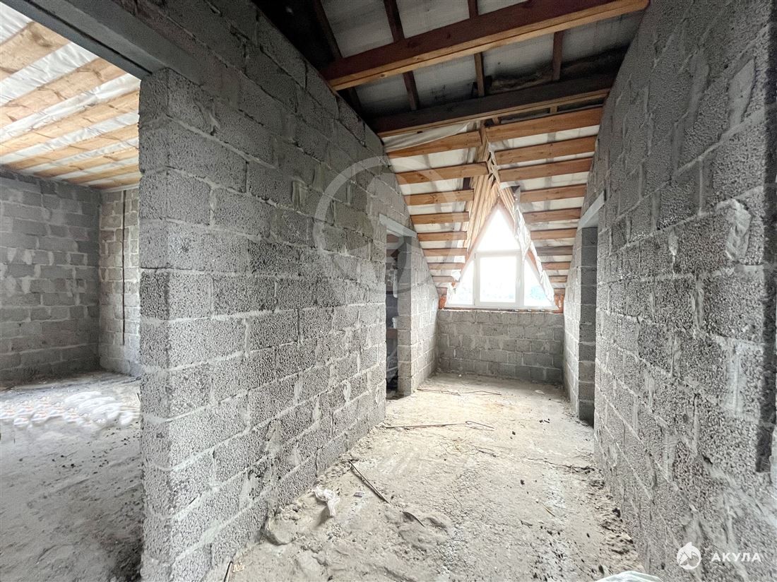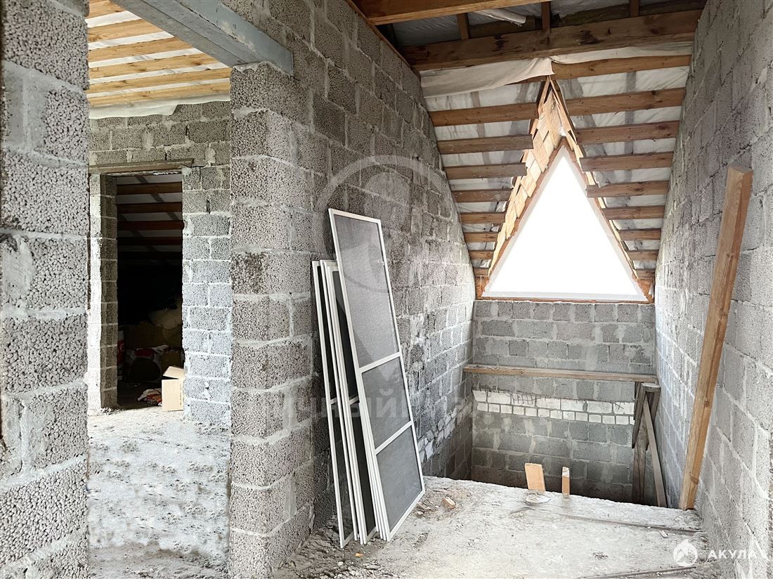 Построен из полнотелых шлакоблоков. Фундамент бетонный с армопоясом (арматура 22 мм). Перекрытия - ж/б плиты.
