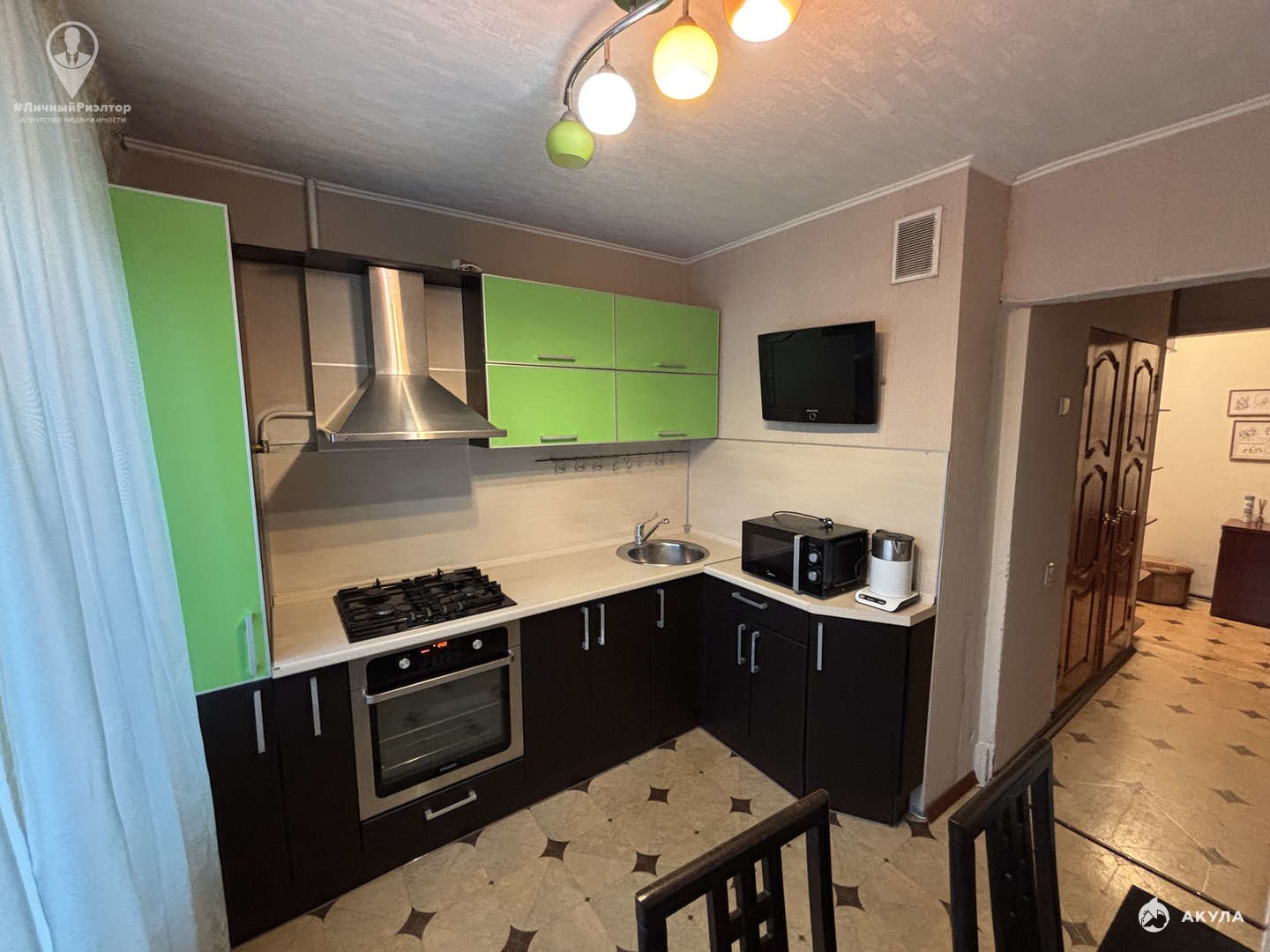 В квартире есть вся необходимая мебель: в прихожей — мебель для хранения вещей, в комнатах — диван, кровать, шкаф, стенка, в кухне — кухонный гарнитур со всей необходимой техникой. Также имеется спальный гарнитур и стол со стульями. Кроме того, в квартире есть холодильник, телевизор и стиральная машина.